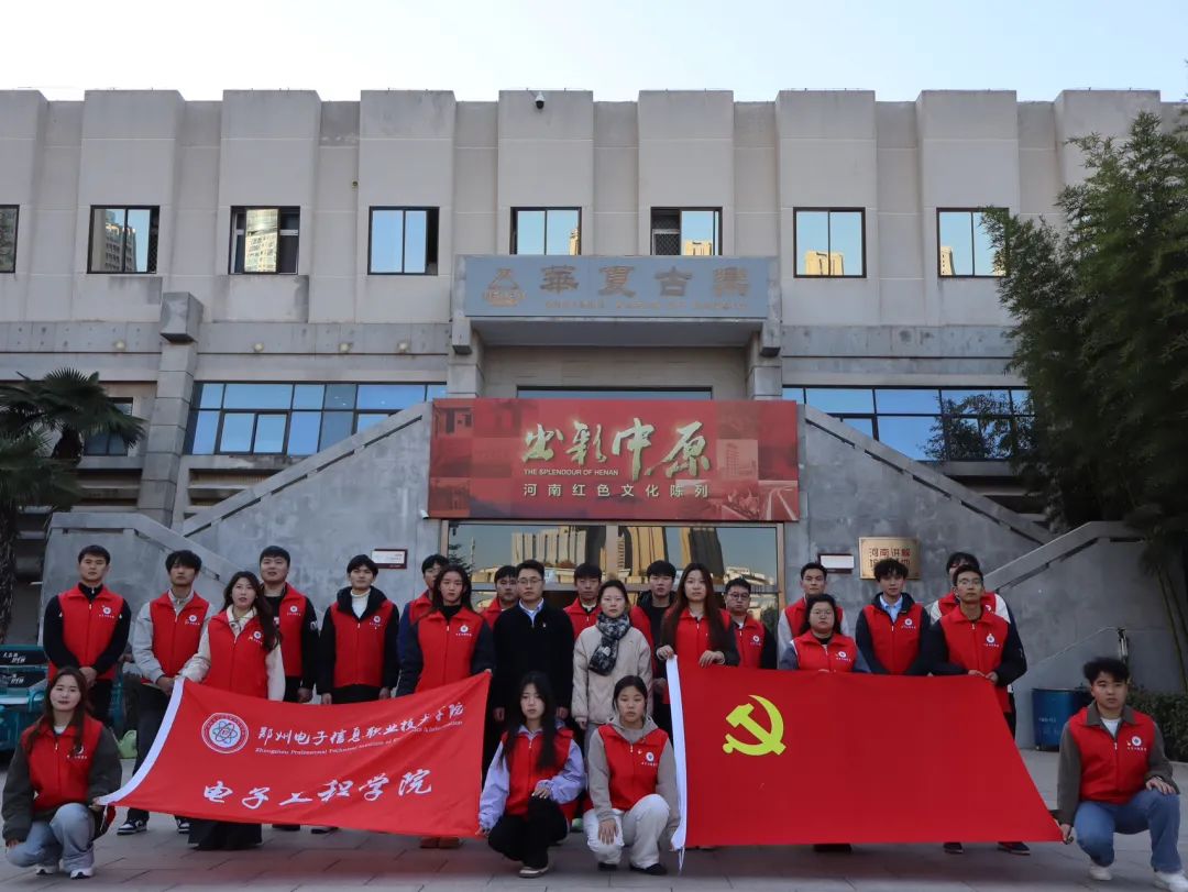 為深入貫徹習(xí)近平新時(shí)代中國(guó)特色社會(huì)主義思想,學(xué)習(xí)體悟黨的二十大精神的深刻內(nèi)涵,認(rèn)真落實(shí)黨的二十屆三中全會(huì)精神,電子工程學(xué)院于2024年12月1日,前往河南博物院“出彩中原——河南紅色文化”陳列館。活動(dòng)由電子工程學(xué)院黨總支書記王正偉、學(xué)生黨支部書記李玲玲、教師代表郭文建、李一凡及“紅色星火”志愿者們,前往現(xiàn)場(chǎng)陳列館參觀與學(xué)習(xí)。