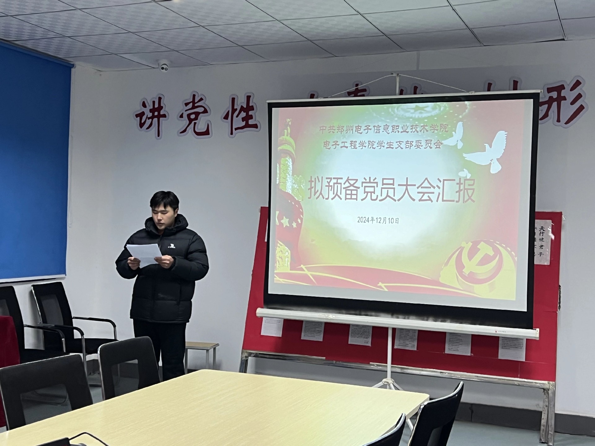 2024年12月10日電子工程學(xué)院在綜合辦公樓606會(huì)議室召開(kāi)學(xué)生黨支部接收預(yù)備黨員大會(huì)。會(huì)議由學(xué)生黨支部書(shū)記李玲玲主持,電子工程學(xué)院黨總支書(shū)記王正偉、學(xué)生支部書(shū)記李玲玲、教工支部書(shū)記李冰乳,學(xué)院教師黨員同志及8名擬預(yù)備黨員參會(huì)。