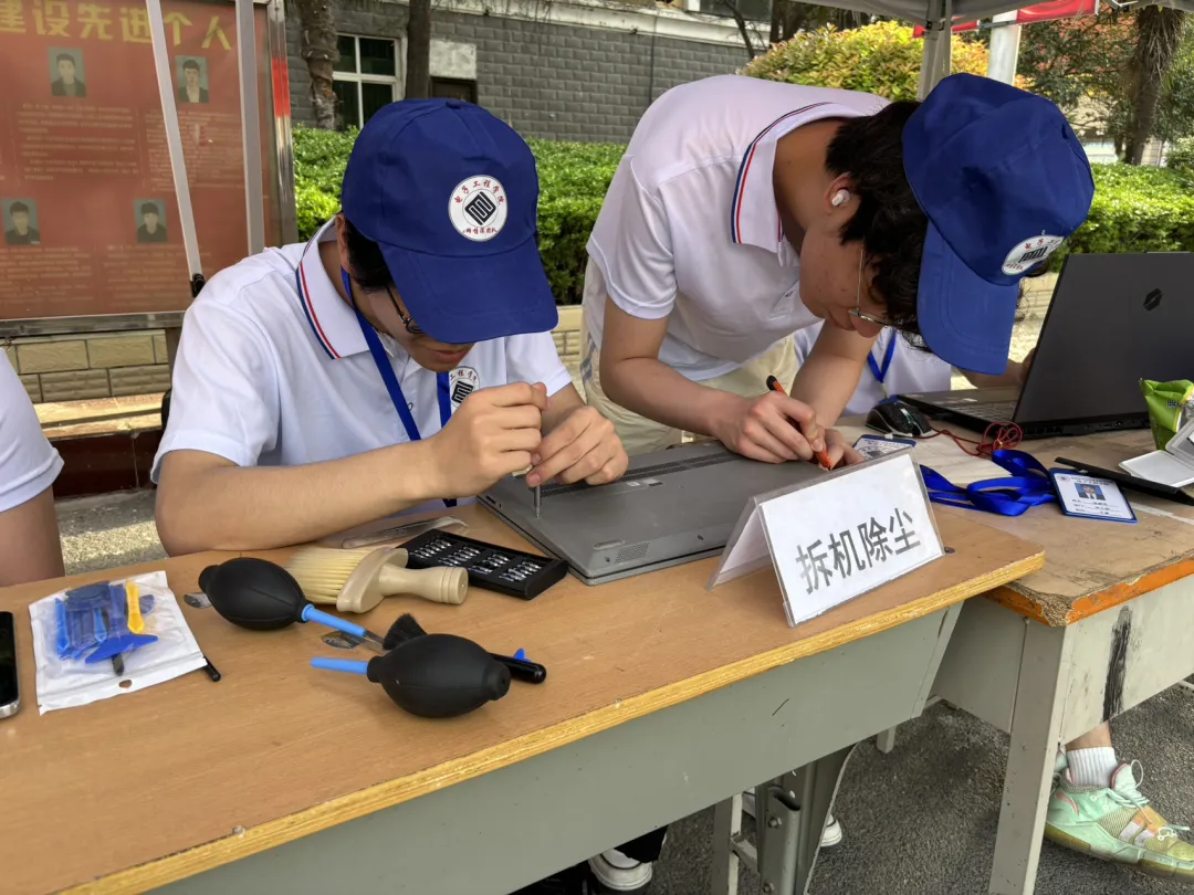 為進(jìn)一步探索“黨建+”融合發(fā)展的實(shí)踐路徑,賦能“一院一品”特色品牌建設(shè),電子工程學(xué)院以黨建引領(lǐng)專(zhuān)業(yè)建設(shè),于2025年4月17日辦公樓大前如期開(kāi)展“e網(wǎng)情深、e心向黨"義修電腦,并且此次開(kāi)展拍攝證件照的同時(shí)還舉行了ps修圖制作小比賽,在突顯專(zhuān)業(yè)特色,聚焦學(xué)生需求的同時(shí)也幫助師生解決電腦問(wèn)題。