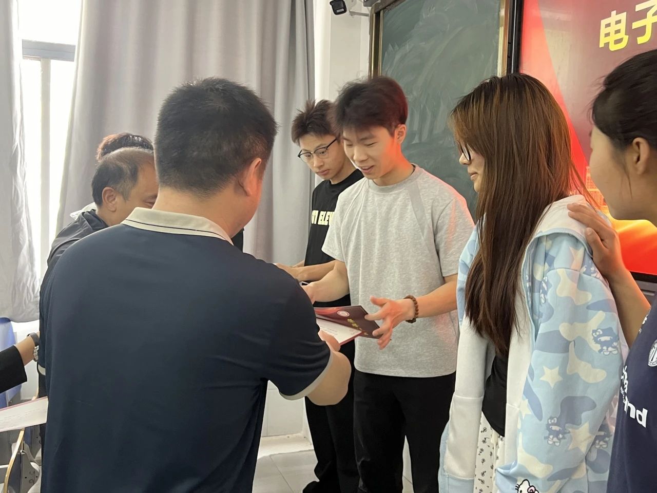 頒獎(jiǎng)儀式上,電子工程學(xué)院黨總支書記王正偉、學(xué)生黨支部書記李玲玲、綜合辦公室主任田峰林參與這次頒獎(jiǎng)。依次為在運(yùn)動(dòng)會(huì)中表現(xiàn)出色的運(yùn)動(dòng)員們頒發(fā)證書和獎(jiǎng)品,表彰他們?cè)谫悎?chǎng)上的卓越和表現(xiàn)不懈努力。這些證書不僅是對(duì)運(yùn)動(dòng)員們個(gè)人成就的認(rèn)可,更是對(duì)他們背后團(tuán)隊(duì)協(xié)作和支持的肯定。運(yùn)動(dòng)員們臉上洋溢著自豪的笑容,手拿榮譽(yù)證書的那一刻,成為他們青春記憶中最閃耀的瞬間。