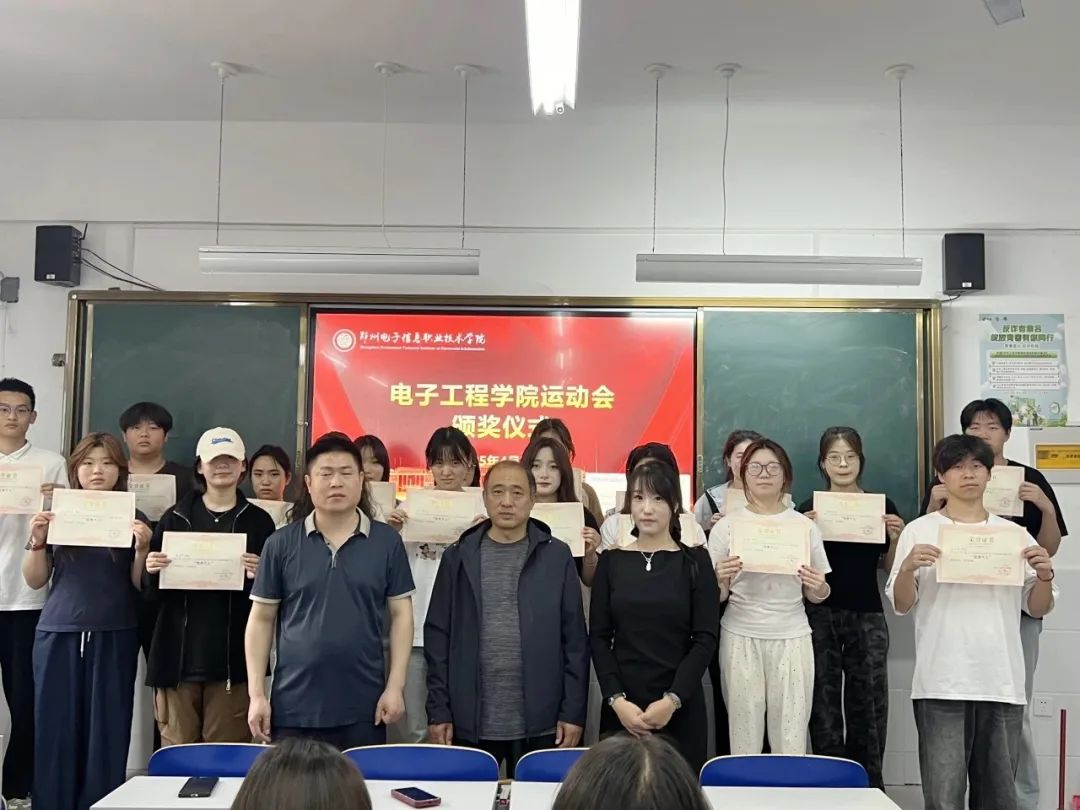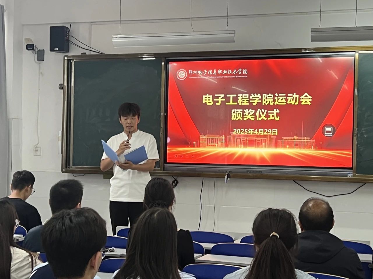 在汗水與歡呼交織的賽場(chǎng)上,電子工程學(xué)院的運(yùn)動(dòng)健兒們用拼搏詮釋青春,用速度與力量書寫熱血篇章!經(jīng)過激烈角逐,運(yùn)動(dòng)會(huì)各項(xiàng)賽事塵埃落定。2025年4月29日下午,電子工程學(xué)院在5號(hào)教學(xué)樓舉行了運(yùn)動(dòng)會(huì)頒獎(jiǎng)儀式,為在賽場(chǎng)上奮勇爭(zhēng)先的運(yùn)動(dòng)員們加冕榮耀,共同回顧這場(chǎng)榮耀時(shí)刻!