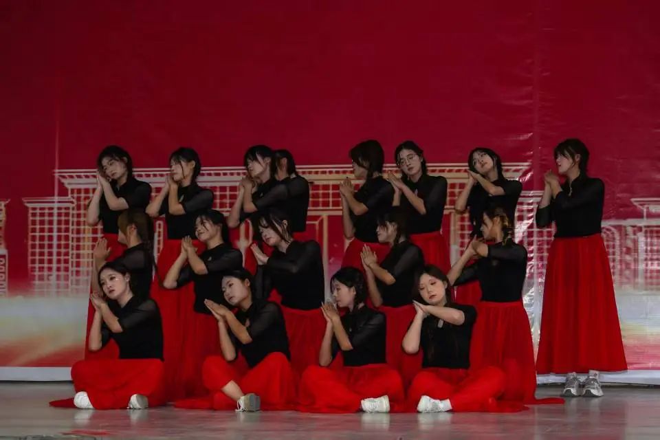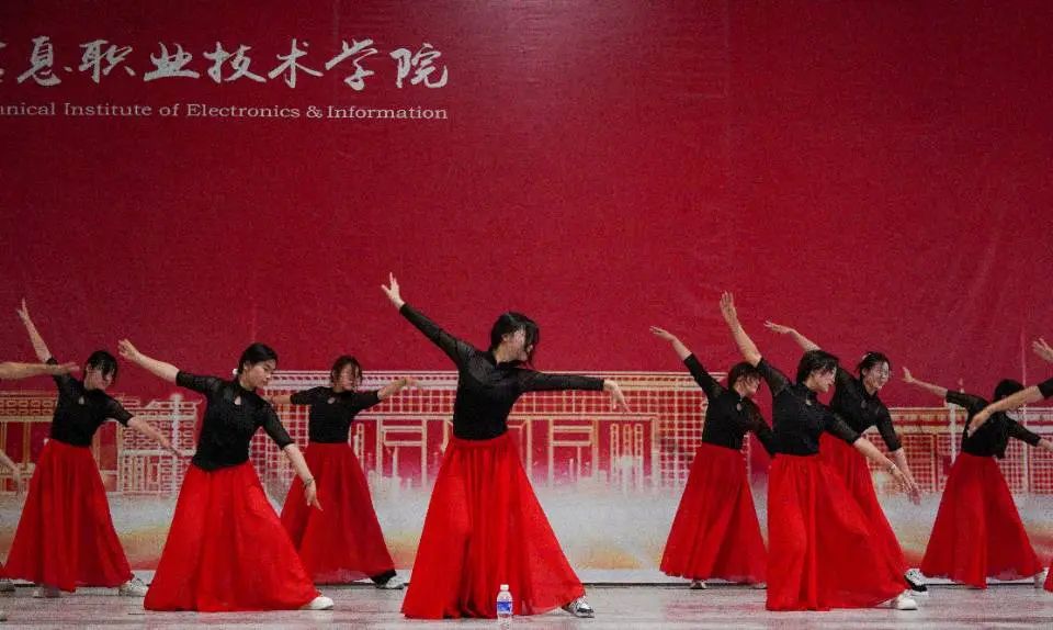 比賽現(xiàn)場(chǎng),電子工程學(xué)院的同學(xué)們身著精心準(zhǔn)備的服裝,以飽滿的熱情、精湛的技藝和深刻的情感投入,將舞蹈中蘊(yùn)含的紅色精神展現(xiàn)得淋漓盡致。從動(dòng)作編排到表情管理,從節(jié)奏把控到情感傳遞,每一個(gè)細(xì)節(jié)都處理得恰到好處,她們用靈動(dòng)的舞姿,將那段波瀾壯闊的歷史生動(dòng)地展現(xiàn)在觀眾眼前。從開(kāi)場(chǎng)時(shí)的壓抑與掙扎,到中間的奮起反抗,再到最后的勝利歡呼,舞者們用舞蹈的起承轉(zhuǎn)合,帶領(lǐng)觀眾走進(jìn)了那個(gè)熱血沸騰的年代,深刻感受到了革命先輩們?yōu)榱死硐牒托叛?,不惜拋頭顱、灑熱血的偉大精神。