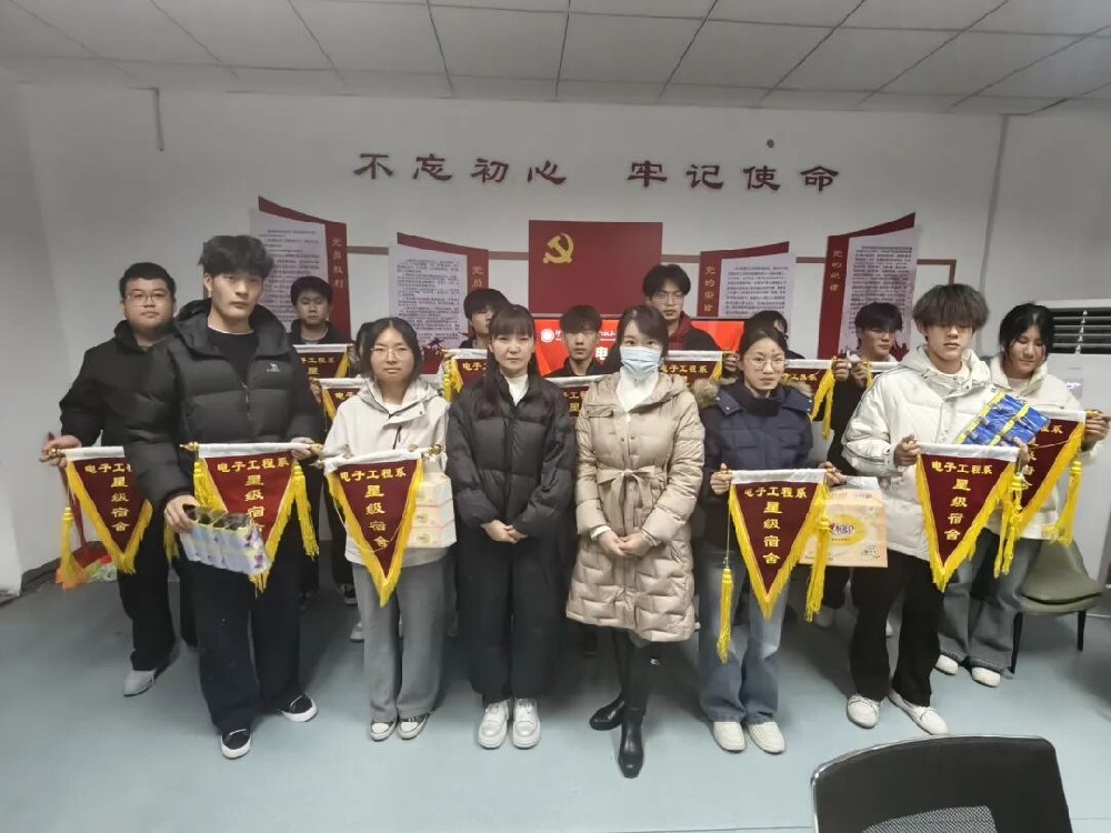 為不斷進(jìn)一步增強(qiáng)電子工程學(xué)院學(xué)子們的衛(wèi)生意識(shí)和文明素養(yǎng),展現(xiàn)良好的校園形象,電子工程學(xué)院于2025年11月17日開(kāi)展了“流動(dòng)紅旗”評(píng)比活動(dòng)。其中黨總支書(shū)記李玲玲、輔導(dǎo)員代表梁哲老師對(duì)優(yōu)秀宿舍頒發(fā)流動(dòng)紅旗,各班級(jí)班長(zhǎng)、團(tuán)支書(shū)、學(xué)院生活部參與本次頒發(fā)儀式。
