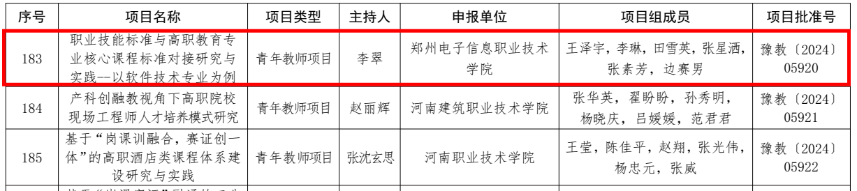 我院李翠教師主持項目“職業(yè)技能標準與高職教育專業(yè)核心課程標準對接研究與實踐--以軟件技術專業(yè)為例”獲得2023 年河南省職業(yè)教育教學改革研究與實踐項目立項