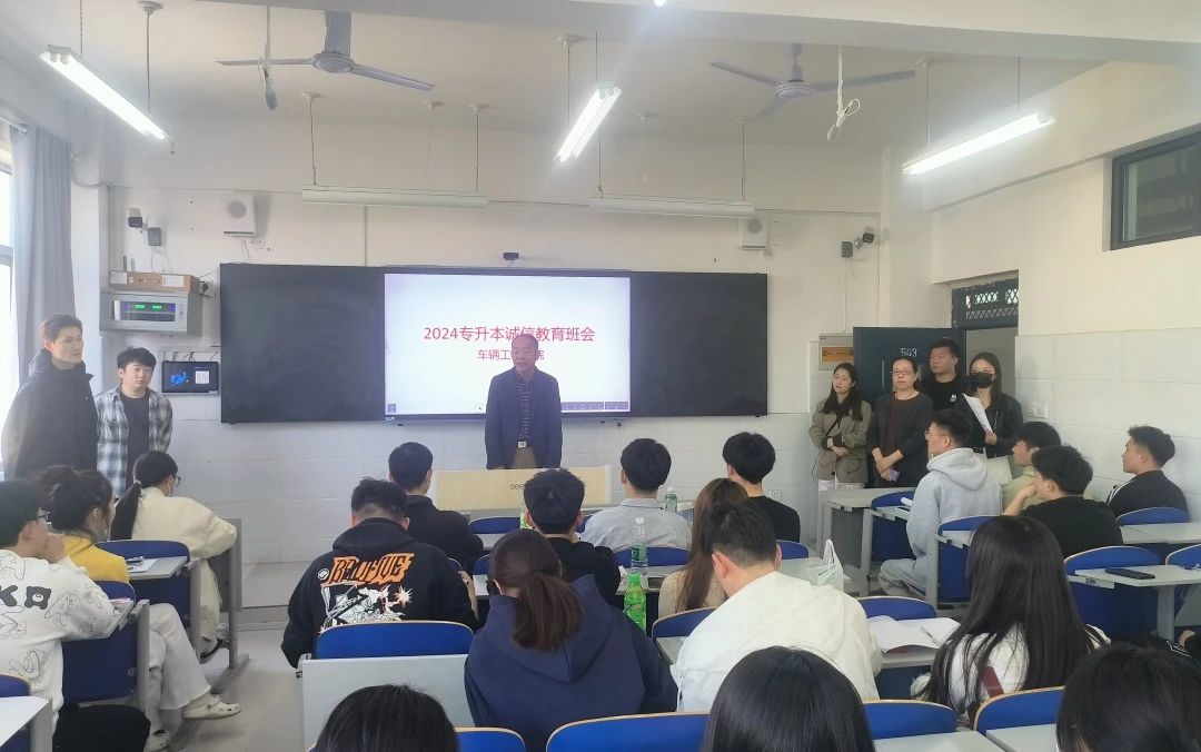 為切實(shí)做好2024年??飘厴I(yè)生專升本考試相關(guān)工作,切實(shí)加強(qiáng)專升本考試期間的誠(chéng)信教育,端正考風(fēng)、嚴(yán)肅考紀(jì),營(yíng)造文明、誠(chéng)信考試的良好考風(fēng)和學(xué)風(fēng),2024年3月30日車輛工程學(xué)院院長(zhǎng)丁明來,黨總支書記王華以及輔導(dǎo)員老師們?cè)谖逄?hào)樓503教室開展2024年專升本考前教育班會(huì)。