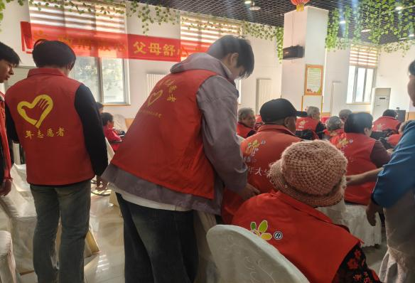 當(dāng)天下午,志愿者們一抵達(dá)養(yǎng)老院,便迅速分組投入到活動(dòng)當(dāng)中。有人俯身傾聽老人們的人生故事,送上真摯的問候與祝福,在笑語(yǔ)盈盈間傳遞溫暖;有人推著輪椅,陪伴老人漫步于秋日柔和的陽(yáng)光里,步履緩緩,時(shí)光仿佛也溫柔下來;還有人小心攙扶著長(zhǎng)者,協(xié)助他們活動(dòng)身體,一舉一動(dòng)間盡顯耐心與關(guān)懷。整個(gè)養(yǎng)老院洋溢著歡聲笑語(yǔ),沉浸在一片和樂融融的氛圍之中。