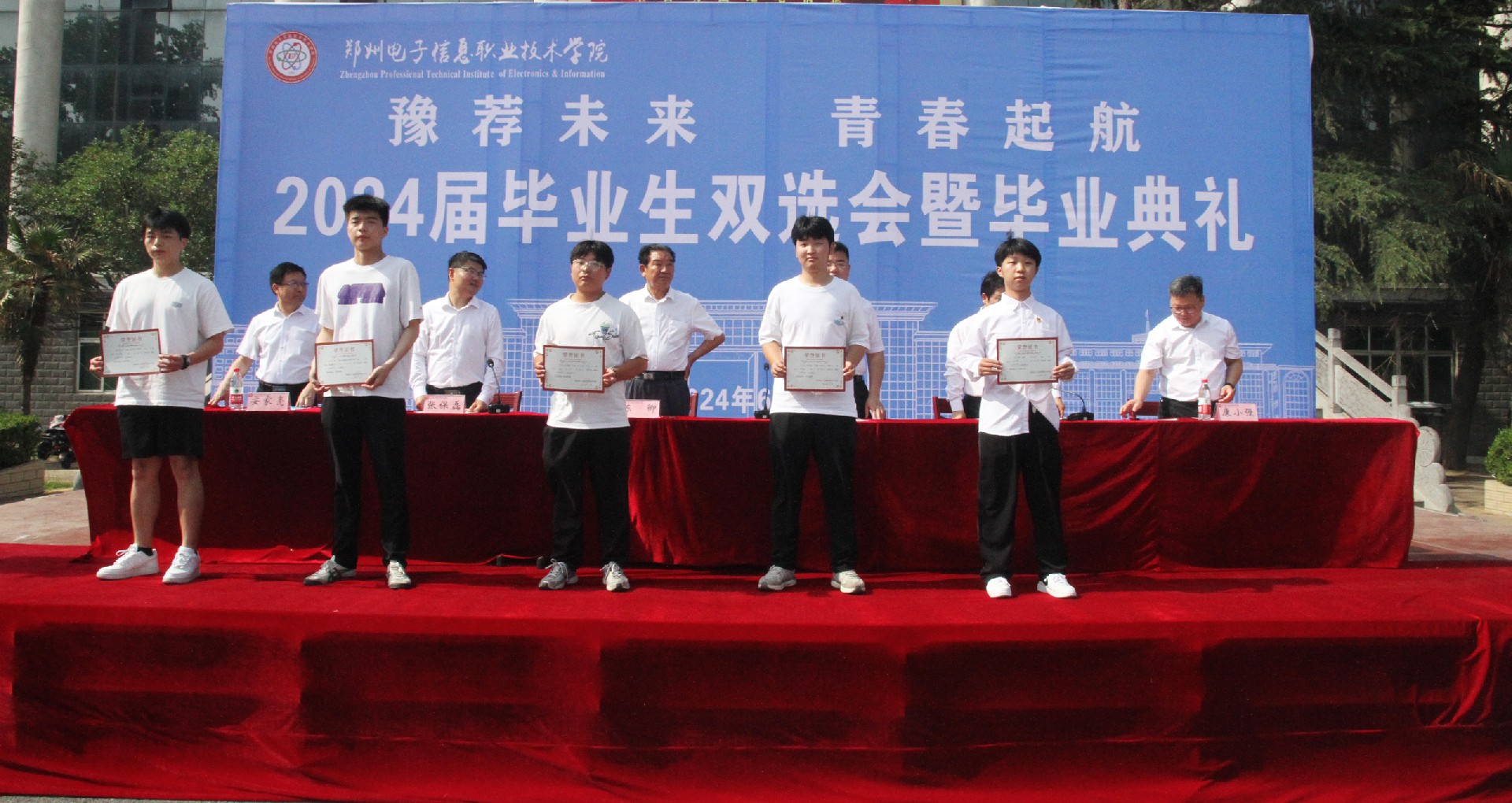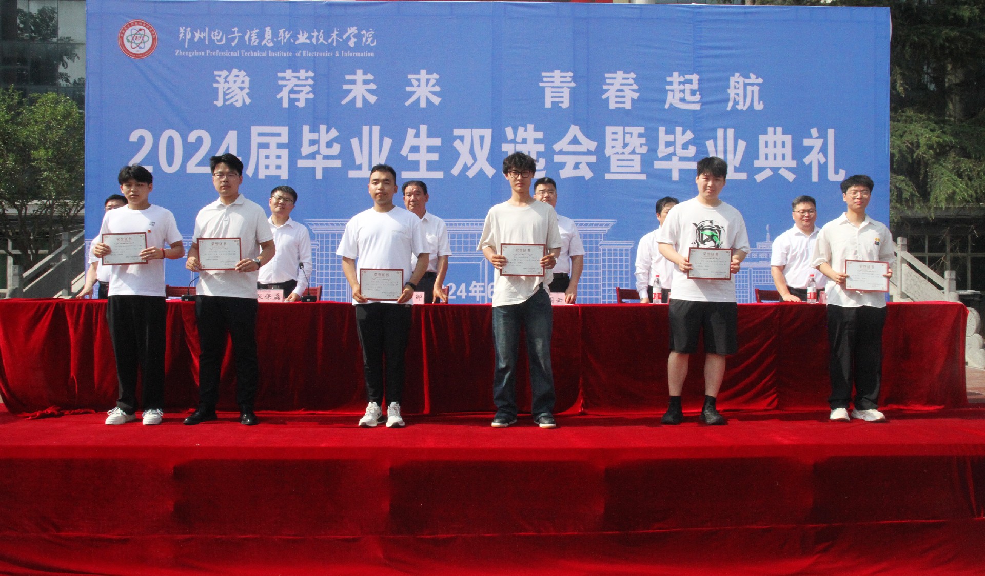 盛夏驪歌,青春飛揚(yáng)。6月26日,我校在辦公樓前廣場(chǎng)隆重舉行“豫薦未來(lái) 青春?jiǎn)⒑健?024屆畢業(yè)生雙選會(huì)暨畢業(yè)典禮。學(xué)校創(chuàng)辦人、董事長(zhǎng)陳卿,黨委副書記、校長(zhǎng)陳國(guó)云,黨建指導(dǎo)員、黨委副書記張保磊,黨委副書記安家亮,副校長(zhǎng)武耀春,校長(zhǎng)助理康小強(qiáng)出席大會(huì),各二級(jí)學(xué)院負(fù)責(zé)人、24屆畢業(yè)生參加,大會(huì)由安家亮主持。